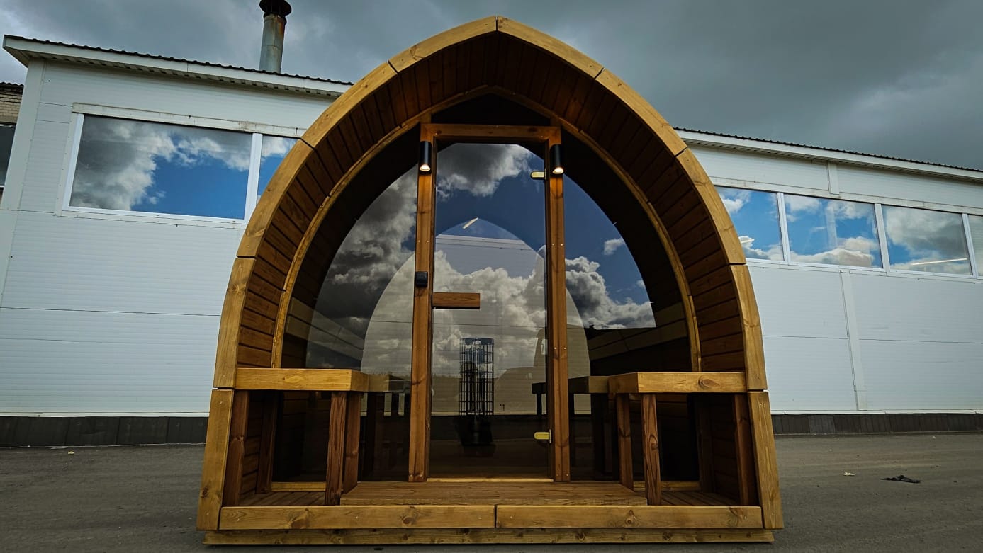 Die Blattsaunen werden wahlweise aus skandinavischer Fichte oder Thermoholz gefertigt, bei einer Wandstärke von 42 mm.